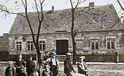 Dorfstraße, der Junge in der hinteren Reihe links ist Arnold Jäzosch.