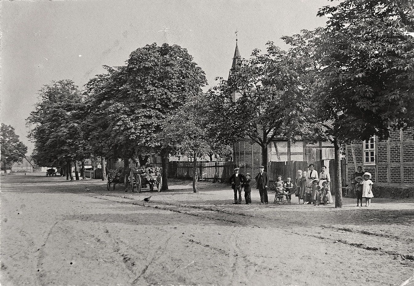 um 1910. Die Dorfstraße ist noch vollständig ohne Straßenbelag,