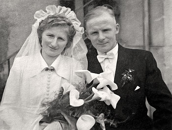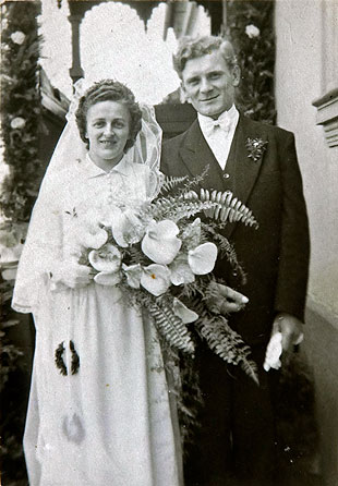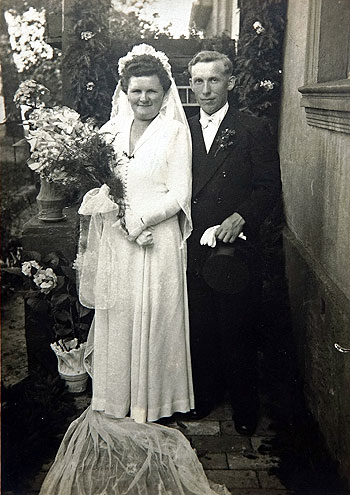 im Knopfloch. Das Brautpaar ging vom Haus der Braut mit seinen Familien