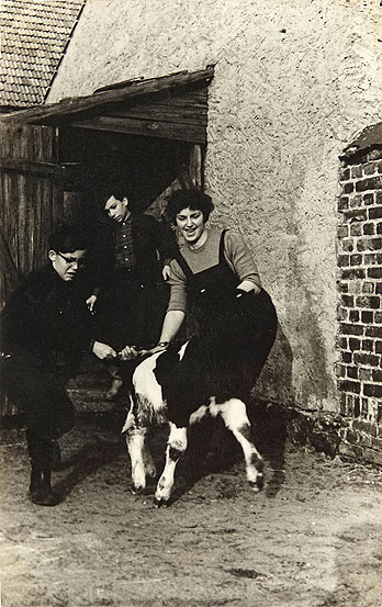 Kälbchen knien links Detlef Barwar und rechts Günter Wilke. Dahinter