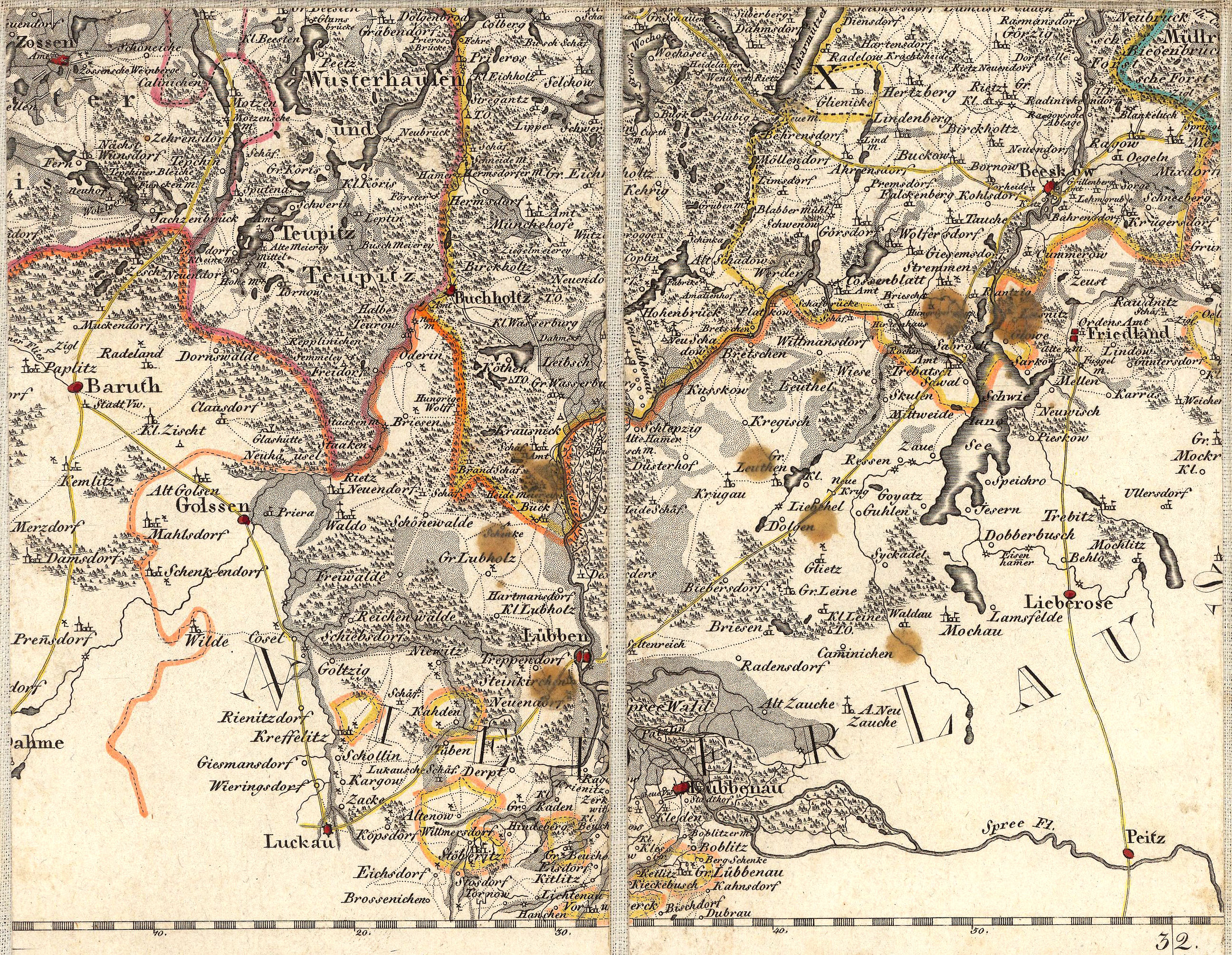 alles 1623-1815 zur Niederlausitz im Besitz der Wettiner gehörend, zum Zeitpunkt der Kartenerstellung