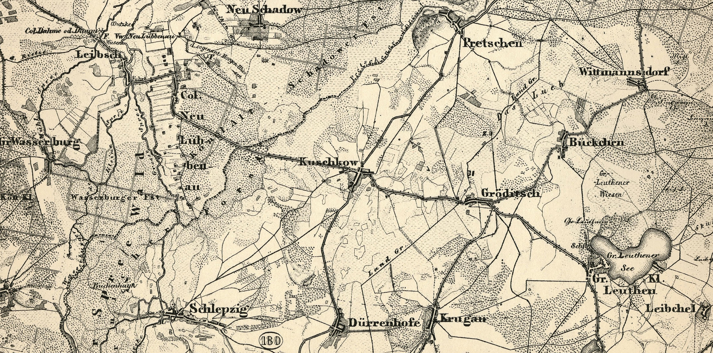 sowie den Amtsdörfern Kuschkow (Kuschko) und Schlepzig. Wenn Sie Vergrößerungen sehen