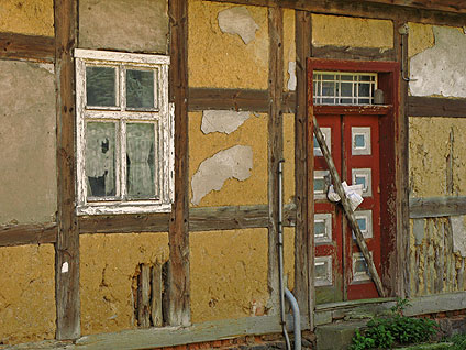Wirtschaftsgebäude aus Fachwerk im Dorfgebiet, leider nur in schlechter Qualität erhalten.