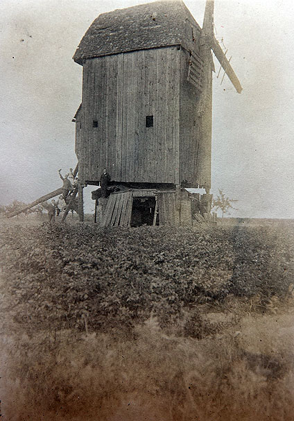 entstanden, oben auf dem Flügelkreuz stehen Mühlenbauer / Zimmerleute oder