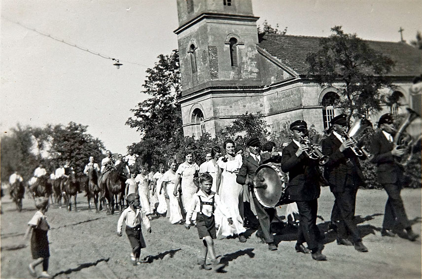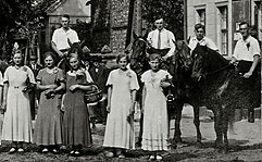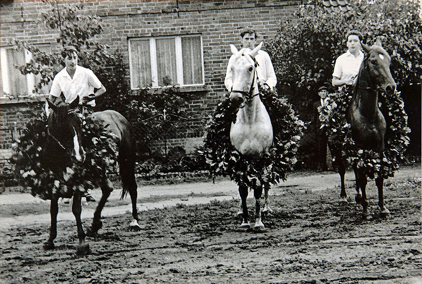 Hemd auf ihren Pferden. Waren alle Straßen des Dorfes passiert, nahm der Zug Aufstellung am mit Girlanden