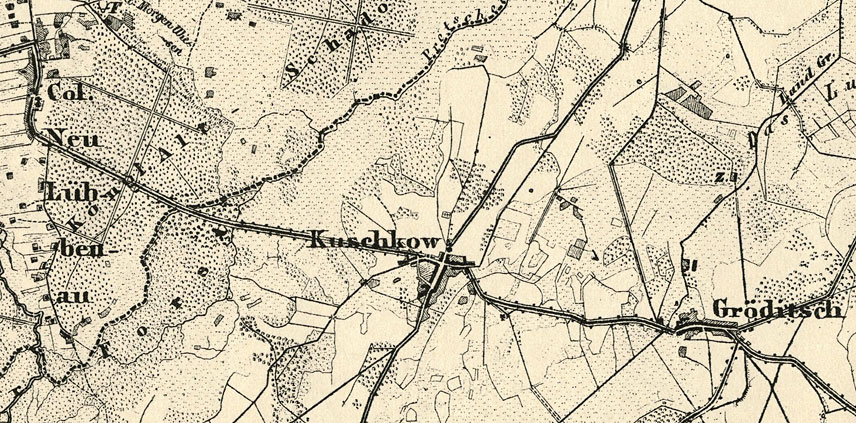 Ausschnitt mit dem näheren Umfeld des Dorfes Kuschkow. Auf der Website der Deutschen Fotothek kann man